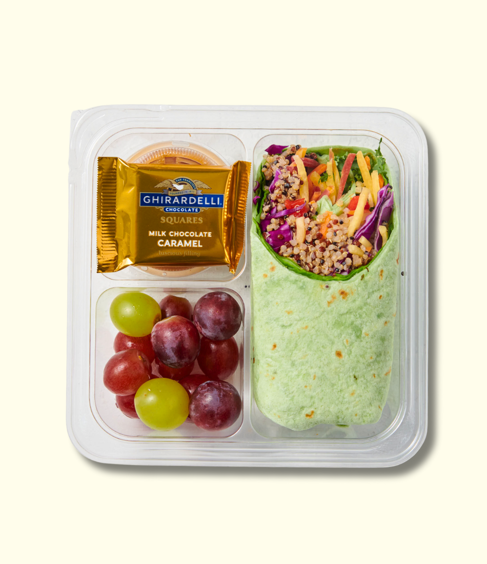 Accompanied by sweet, juicy grapes for a burst of freshness, and a decadent Ghiradelli Chocolate Square for the perfect sweet finish.